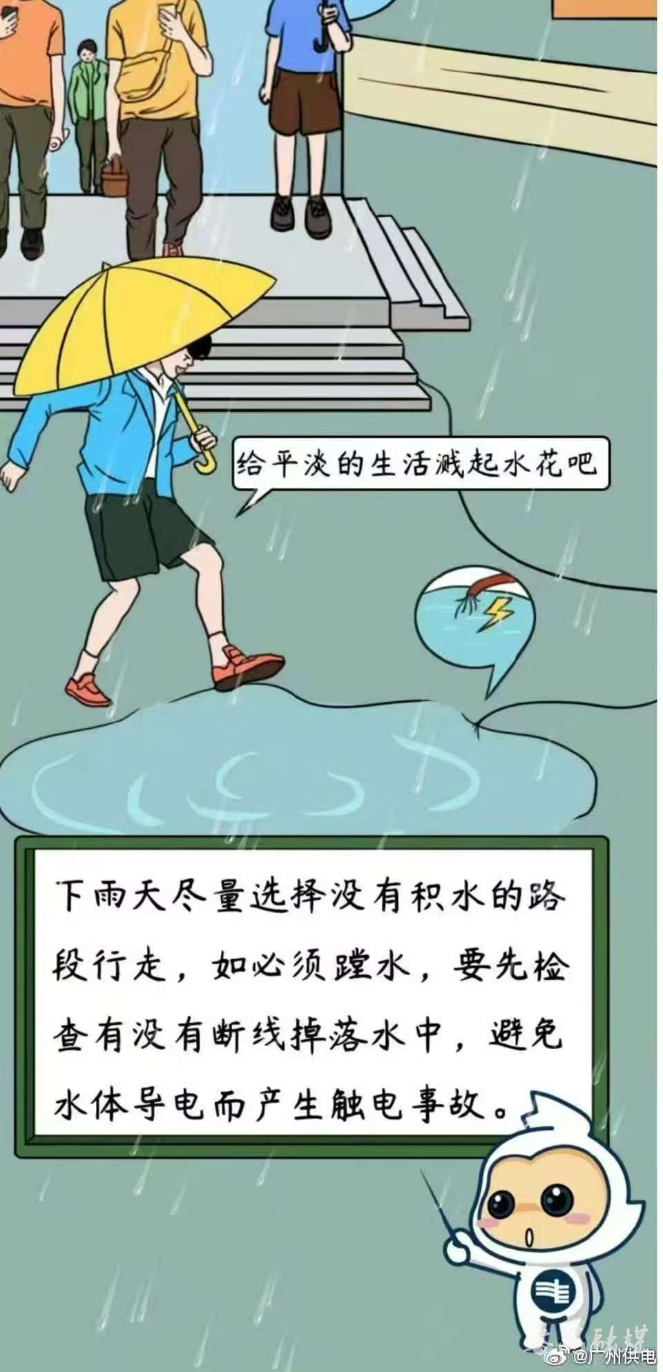 请广大市民注意台风天气用电安全,避免接触积水区域带电设备。各用电单位做好自有电力设施防护工作。如遇停电请不要慌张,可及时联系物业或致电95598,也可登录南网在线App一键报障,工作人员将全力尽快恢复供电。