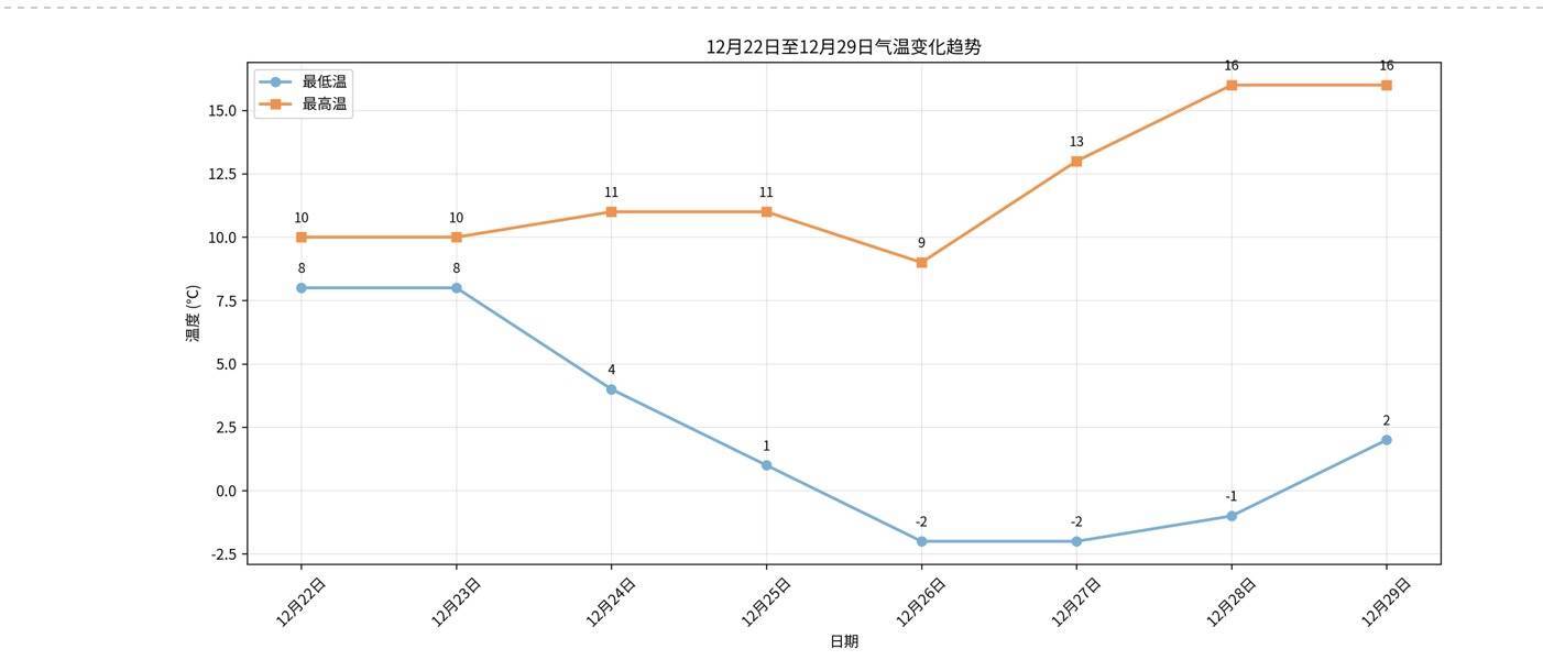 12月29日:多云到阴天华生证券,偏北风2到3级,气温2~16℃。